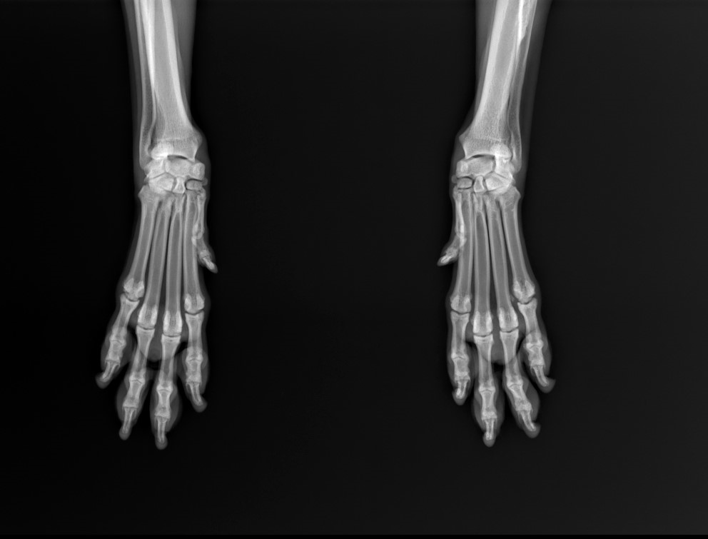 Orthopedic examination did not detect abnormalities, x-ray with awake patient was performed on forelimb (medio-lateral view of elbows and dorso-palmar view of carpus).